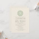 Una invitación a fiesta de spa que incluye una ilustración de una rodaja de pepino en la parte superior. Personaliza el texto verde con detalles de tu ocasión.