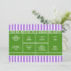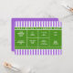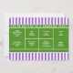 Invitaciones creativas para fiestas o eventos con tema de tenis con una cancha de tenis sobre un fondo rayado morado.