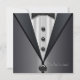 Invitación elegante con esmoquin negro y camisa blanca y corbata negra en la parte delantera y un vestido de noche sin tirantes con collar de diamantes en la parte posterior. Esta es una plantilla de invitación a fiesta o evento versátil para cualquier fiesta u ocasión especial. El diseño frontal y posterior también están disponibles en sobres.