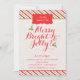 Esta invitación de vacaciones incluye las palabras - Merry, Bright y Jolly en un hermoso guión rodeado de bayas y hojas huecas. El fondo es blanco, con rayas rojas y verdes. Esta hermosa tarjeta se puede usar para invitaciones de Navidades/fiestas de vacaciones.