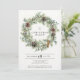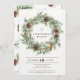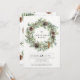 Invitación festiva de fiesta por la corona natural - Una invitación elegante perfecta para su celebración de vacaciones. Nuestra moderna invitación rústica incluye una guirnalda natural de pino adornada con eucaliptos y conos de pino. A sus huéspedes les encantará recibir nuestra invitación rústica y moderna. Nuestra plantilla es fácil y conveniente para que usted personalizar nuestra invitación para su celebración.