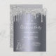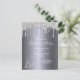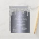 Fondo falso plateado, con giros falsos de plata y árboles navideños de invierno como decoración. Con el texto: Fiesta de Navidades escrito con escritura moderna y moderna de gran tamaño con letras a mano. Plantillas para la información de su fiesta. Sugerencia: Si no desea que se vea como una postal, haga clic en personalizar, vaya a la parte posterior y quite el separador y el sello postal.
