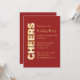 "Alegres" escrito con luces de marquesina antiguas en un fondo rojo de arándanos festivos, acentúa esta invitación de fiesta de vacaciones, dándole una moda y un aspecto de moda.