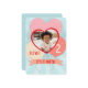 Una invitación de cumpleaños divertida incluye globos en forma de oído y una foto favorita en forma de corazón. Use el reverso para todos los detalles.
