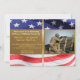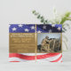 Invitaciones a la foto de fiestas con bandera patriótica y oro para la jubilación - Foto militar personalizada en el lado derecho. Bordeado en la parte superior e inferior con foto de las estrellas y rayas de la bandera de Estados Unidos. Centered es un falso fondo metálico de oro con un poco de purpurina dorado buscando una celebración festiva. Lee 'Por favor Únete a nosotros en honor a los 25 años de servicio militar' en blanco. (Años de servicio personalizados.) Rango y nombre personalizados en color oro. La cinta vertical de aspecto dorado en el centro separa las dos mitades. La parte posterior tiene un fondo de color dorado sólido y bordes de cinta metálica dorada.Nota Todas las imágenes están impresas. No es purpurina real o metalizado. Elegante, personalizado soldado militar fiesta invitaciones de retiro. Haga clic en la opción Personalizar para cambiar los colores del texto, el tamaño y los estilos de fuente. Visite nuestra tienda Zazzle.com/angela65* para más invitaciones personalizadas.