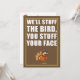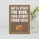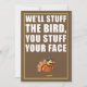 Nosotros Rellenamos al Pavo, Tú te Rellenas la Cara divertida Invitación a Friendsgiving con un pavo de dibujos animados con fondo marrón. ¡Una excelente invitación para invitar a tus amigos a un banquete de Friendsgiving!