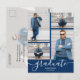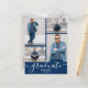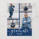 Añade tus fotos favoritas a estas postales de invitación de la fiesta de graduación con las palabras graduados y clase de en letras de moda en un fondo de color de escuela azul marino en el frente y tus detalles en la parte posterior. Más diseños y colores hechos en nuestra tienda.