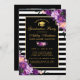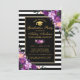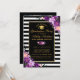 Acuarela morada, floral ultravioleta y dorada con invitación a fiesta de graduación de franjas negras y blancas - Foto de vuelta