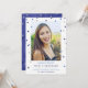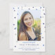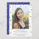 Confeti naval, azul y plateado rodean la foto de tu graduado en estos anuncios de graduación de moda y confeti. Fiesta detalles en la espalda, ¡así que también se hace como una invitación! (Opcional: puede eliminar los detalles de la invitación en la parte posterior utilizando la herramienta "personalizar".)