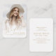 La invitación de graduación de tamaño pequeño dorado y blanco simple e Invite presenta un guión moderno de moda y una foto, simple y elegante. Personalizado con tu propia foto e información del fiesta de grado en la parte posterior.