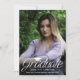 Foto por delante y por detrás... Invitación de invitación a graduación de guión informal con icono de tapón de mortarboard, perfecto para el grado de secundaria o universitario. Tipografía minimalista moderna, escritura informal elegante "Graduate". Captura esos momentos especiales de crecimiento y sonrisas de alegría y juventud para siempre. Subir una foto de portada en modo retrato completo del graduado en la parte delantera, y una foto de orientación al paisaje, así como detalles pertinentes de la fiesta de graduación en la parte de atrás. Sombra automáticamente las zonas perfectas de la foto.