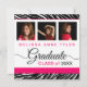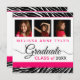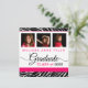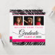 © Socialite Designs. Motivo de cebra rosada, ondulada y suave, invitación para graduación de 3 fotos. Una divertida graduación invita a una joven que celebra un logro maravilloso.