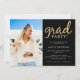 ¿Buscando la manera perfecta de celebrar su graduación e invitar a todos sus seres queridos a unirse a la diversión? ¡No busque más que estas impresionantes invitaciones a la fiesta de graduación! Con una foto del graduado y las palabras "fiesta de grado" en purpurina dorado con un elegante fondo negro, estas invitaciones seguramente impresionarán a todos sus invitados. Al contrario, descubrirás un magnífico patrón geométrico moderno de oro y negro que aporta un toque de elegancia y sofisticación a tu invitación. Además, estas invitaciones son fáciles de personalizar con todos los detalles importantes de su fiesta de graduación, incluyendo la fecha, hora y ubicación. Además, puede descargar estas invitaciones al instante para una experiencia súper cómoda y sin complicaciones. Prepárate para celebrar tu gran logro con estilo!
