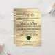 En esta elegante invitación a la graduación dorada hay rayas doradas en un fondo dorado y brillante que hace pop el guión negro. Las vibraciones elegantes de Glam.