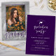 Esta invitación a la fiesta de graduación es perfecta para el graduado de secundaria o universitario que busca una simple invitación de escritura púrpura moderna con una foto completa en la parte de atrás que da la ilusión de dos retratos. Personaliza tu información con todos los detalles del fiesta de grado, clase de información y agrega un retrato de sesión de foto de graduación favorita. Diseñado por Simple Desert Designs Studios para Zazzle. Envíenos un mensaje para personalizar este o cualquiera de nuestros diseños para que se ajusten a sus necesidades.