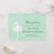 Un gran diente de león, con semillas flotantes, decora esta invitación sobre un fondo verde menta. Se muestra en el papel básico; sin embargo, recomiendo el peso y la textura del papel de lino para un ambiente más lujoso. Si se necesitan elementos adicionales para coordinar con esta invitación, contacte con nosotros en prettyfancyinvites@gmail.com con su solicitud.