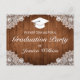 Postal de invitación de graduación. Estilo rústico con fondo de madera marrón y decoración de encaje blanco. Hay más artículos disponibles en este estilo en nuestra tienda. Puede editar el diseño más adelante, cambiar el color de fondo, las fuentes y añadir texto adicional haciendo clic en el vínculo "Personalizar esta plantilla" y, a continuación, en el vínculo "Hacer clic en el personalizar más adelante".