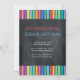 Invitación a la ceremonia de graduación de preescolar moderna y simple con hileras de tiza colorida sobre un fondo de pizarra. ¡Tipografía de álbumes! ¡Perfecto para una celebración preescolar o una invitación familiar para celebrar a sus pequeños graduados!