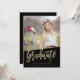 ¡Celebra la graduación con una invitación moderna y hermosa a la graduación! Este diseño también está disponible en invitación en nuestra tienda. Toda la fotografía se muestra sólo como muestra y no se puede revender. Este producto sólo se pretende adquirir una vez que las fotos de muestra se sustituyan por las propias imágenes. Nota: Este diseño tiene elementos que parecen Relieves metalizados dorados pero no se imprimirá ningún Relieve metalizado real en esta tarjeta.