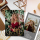 Anuncie su próxima graduación con fotos favoritas y este diseño tan simple, un poco retro. Los titulares y detalles frontales están en tu elección de Relieve metalizado real: oro, plata o oro rosa. Use la parte posterior para mostrar fotos adicionales y/o detalles de celebración.