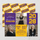 Invitación a graduación moderna de color morado y amarillo dorado - 1 colección de fotos de clase repetidora año atrás