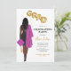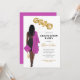 Partido de Graduación Rosa de Mujeres Africanas - Retrato de mujer dibujando vestido negro, gorra rosa y vestido, pelo largo y oscuro. Las letras GRAD en falsos globos de Relieve metalizado dorado. Personaliza con detalles de la fiesta de graduación, y el año de clase y el nombre de la escuela del graduado. Por favor, envíeme un mensaje para ver los elementos coincidentes.