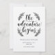 Este estilo rústico ahorra el diseño de la invitación a la fecha incluye laureles de campo dibujados a mano con un divertido tipo de letra caligráfica.