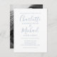 Con sus fotos, nombres de estilo característico, esta elegante postal de invitación a la boda azul polvorienta se puede personalizar con su información en letras de moda. Diseñado por Thisisnotme©