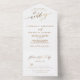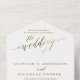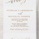 Una hermosa invitación a la boda con un elegante diseño de escritura en oro.