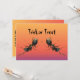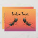 Esta invitación a la fiesta de Halloween presenta un diseño caprichoso de dos hormigas más grandes que la vida bailando a través de una colorida superficie de naranja, oro y morado. Todo el texto se puede personalizar para su evento especial.