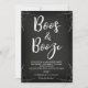 Amplíe sus festividades de Halloween con la invitación de Boos y Booze Chalkboard Halloween. El diseño moderno, en blanco y negro, adornado con elegantes telarañas acuáticas, hará que los clientes fiestas se sientan a la vanguardia. Igualmente idóneo para fiestas de disfraces o animadas reuniones de cócteles, invitan a desentrañar la botella mágica de felicidad encantada. Así que, ¡adelante, acosa los buzones de sus invitados con estas encantadoras invitaciones!