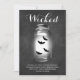Bates espeluznantes atrapados en un frasco de albañil, en un fondo de pizarra, acentúan esta invitación de Halloween. Desplazarse hacia abajo para ver elementos de coordinación adicionales.