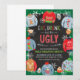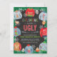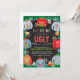 ¡Come, bebe y sé feo en tu próxima fiesta de jersey feo de Navidad! Esta invitación es la forma perfecta de invitar a tus invitados a tu fiesta temática de jersey feo de Navidad o cumpleaños. ¡Es una invitación divertida y perfecta para todas las edades! Una variedad de jerseys feos enmarcan la invitación con tazas de Navidad y acebo sobre un fondo de pizarra.