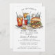 Perfecto para barbacoas en el patio trasero, fiestas de verano, cumpleaños o reuniones informales, esta divertida y sabrosa invitación temática marca la pauta para una deliciosa celebración. Diseñado con gráficos audaces y llamativos, es una manera ideal de invitar a familiares y amigos a un evento lleno de hamburguesas que no olvidarán.