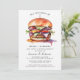 Perfecto para barbacoas en el patio trasero, fiestas de verano, cumpleaños o reuniones informales, esta divertida y sabrosa invitación temática marca el tono para una deliciosa celebración. Diseñada con gráficos audaces y llamativos, es una forma ideal de invitar a familiares y amigos a un evento lleno de hamburguesas que no olvidarán.