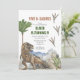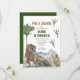 Invitación a la fiesta de cumpleaños T-rex para un pequeño dinosaurio. Borde de dinosaurios acuarelas realistas.