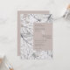 Estas invitaciones nupciales de 5" x 7" presentan un diseño de hojas abstractas en tonos grises polvorientos y con marcadores de posición, "Te invitamos a celebrar al boda de", los nombres de la novia y el novio, fecha, hora, nombre y dirección del boda, "recepción a seguir".