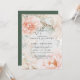 Invitación a la boda | Motif de boda de color verde azulado moderno resumen. Detalles resaltados por un delgado marco dorado que permite que parte del diseño de acuarela en la parte superior muestre colores completos y parte de él detrás mostrando un velo de color nebuloso - Moody y etéreo , este hermoso ilustracion de acuarela pintado a mano en tonos de esmeralda profunda y verde salvia con resaltados de flechas de oro - La caligrafía escrita a mano se combina con un tipo de letra minimalista y contemporáneo. Un estilo moderno y de moda para todas las temporadas. Esto forma parte de una colección de papel de boda con accesorios bodas a juego. © WhimsicalArtwork creado para el BarefootBride™