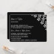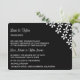 Invitación a la boda mostrada en un diseño clásico pero moderno en los colores blanco y negro con un llamativo patrón de flores. Personalizar esta invitación y cambia el texto de ejemplo al tuyo.