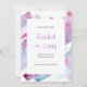 Invitaciones a la boda de acuarela en color púrpura y azul. Moderno y abstracto, combinando colores diferentes con acuarelas de bonito.