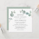 Las flores de la vegetación del eucalipto resaltan esta moderna invitación a la boda en forma de cuadrado, con sutil elegancia. El diseño del texto de la fuente serif añade un refinamiento adicional para transmitir los detalles de su boda de forma muy agradable. Este esquema de color funciona bien para los bodas en cualquier temporada del año. Personalice el texto en la plantilla de texto fácil de usar. Puede cambiar la redacción para que se ajuste a sus preferencias personales. Esta invitación también está disponible en forma de rectángulo 5x7.
