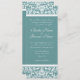 Deep Aqua Blue Elegant Vintage Damask on Perfect para todas sus invitaciones y invitaciones fiestas. Elija entre seis tipos de papel y nueve colores. Impresión vibrante, de sangre completa, a todo color e impresión gratuita a dos lados. Cada invitación incluye un sobre blanco. Estilo y tamaño: 4" x 9.25" Tipo de papel: Pequeños flecos y fibras con sutil variación de color le dan a este papel de 80 lb de peso de cubierta el aspecto de una hoja hecha a mano. Color: cebada Si desea un acabado brillante (gloso sólo en la parte delantera), pida los papeles básicos, de lino o metálicos - para un acabado mate reciclado, fieltro o moteado.