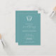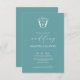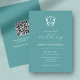 Ahorre en papel y dinero con esta invitación de boda monopólica con código QR. Un diseño sencillo pero elegante, esta invitación a la boda presenta tipografía caligráfica con un tipo de letra sans clásico en blanco sobre azul turquesa. Un elegante escudo azul pálido enmarca las iniciales de la novia y el novio. La tarjeta se revierte a un color turquesa sólido con el código QR de su boda y el espacio para más detalles. Todos los colores son personalizable. Para más invitaciones de bodas con presupuesto, visita www.zazzle.com/dotellabelle