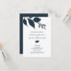 Ahorre en papel y dinero con esta invitación de boda monopólica con código QR. Un diseño sencillo pero elegante, esta invitación a la boda presenta un tipo de letra sans clásico en azul profundo a medianoche sobre un fondo blanco nítido. Una parte superior de hojas enmarca los detalles de tu boda. La tarjeta se revierte a un color azul sólido con el código QR de su boda y el espacio para más detalles. Todos los colores son personalizable. Para más invitaciones de bodas con presupuesto, visita www.zazzle.com/dotellabelle