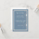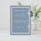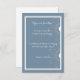 Tarjeta de invitación de boda para coincidir con la solicitud de la doncella de honor y las damas de honor en azul medio con flores transparentes en el lado derecho del diseño y un borde para coincidir.