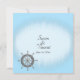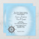Un diseño náutico sencillo con una rueda de barcos para las invitaciones de boda. Ponga los nombres de la novia y de los novios delante de la fecha, dándole a sus invitaciones un ambiente menos formal. Por otro lado, la información pertinente del boda añade un toque clásico. Al hacer las invitaciones, compruebe tres veces la ortografía y las fechas.