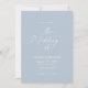 Esta elegante y polvorienta invitación a las bodas azules presenta un frente limpio y minimalista con una tipografía moderna, ideal para los estilos románticos o bodas clásicos. El reverso incluye un escaneado código QR que conduce directamente a tu registro de regalos, lo que facilita a los clientes encontrar y comprar tus regalos preferidos. Un toque de diseño y cuidado a su suite boda.