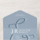 Invitación a la boda azul turbia con monograma
