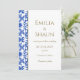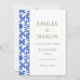 Inspirado en los patrones tradicionales italianos, este diseño azul y blanco fue dibujado a mano y por lo tanto es exclusivo de nuestra tienda. Esto le permite calificar a su boda de manera elegante y elegante, inspirándose en la estética mediterránea tradicional. Ya sea que su boda esté en Italia, Grecia, áreas circundantes, o simplemente quiere infundir esta esencia en su celebración, nuestras invitaciones italianas a la boda azul al estilo siciliano le permiten hacer justamente eso. Son totalmente personalizables, lo que le permite personalizar para que se adapte a sus deseos. Para empezar, simplemente haga clic en 'Personalizar esta plantilla'. Si está buscando una decoración boda y estacionaria en este tema, explore nuestra colección completa, una manera fácil y agradable de preparar todos los detalles para su día especial.