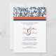 El diseño presenta un patrón azul oscuro con naranja y azul y un fondo blanco en el marco floral. Este diseño es perfecto para bodas con colores rosa y gris. Personalizar de regalos de novias y favores matrimoniales! ¡Mira en mi tienda por productos a juego!